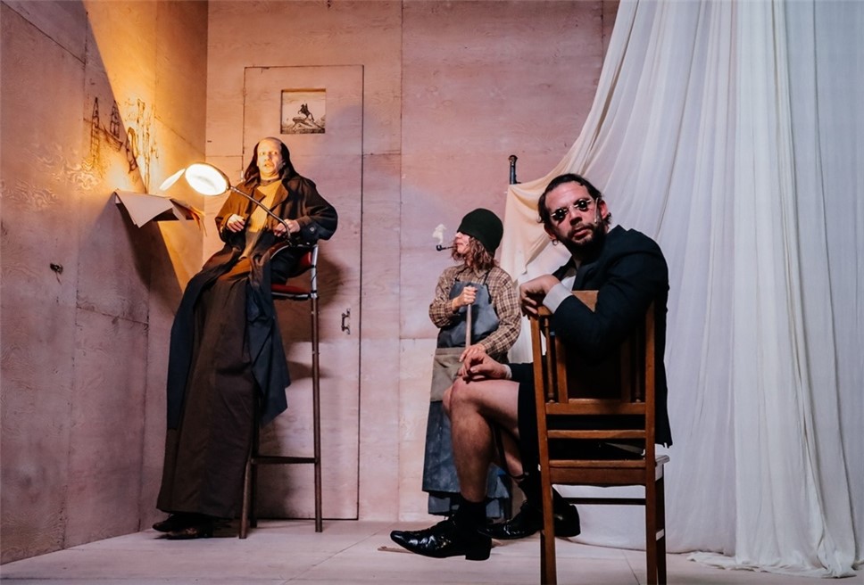 Моцарт и Сальери снова и снова проигрывают ситуацию, в которую поместил их автор. Меняя акценты, переворачивая смыслы, меняясь репликами. От высокой драмы до капустника, от оперы до клоунады и перформанса. В программке написано – не имеет фиксированного времени. История повторяется дважды, трижды. Причем это каждый раз иная история, наполненная новыми смыслами, не только о Моцарте и Сальери, не только об артистах, участвующих в спектакле, но и о нас, зрителях.